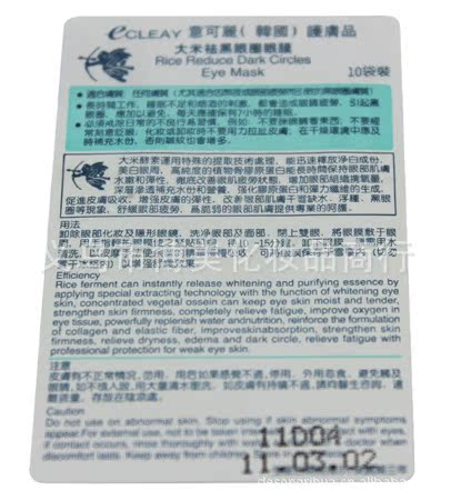 韩国ECLEAY意可丽大米祛黑眼圈眼膜10片装