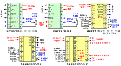 3、盘面安装式移相触发器19、20端子可以外接10K以上电位器限幅(限制最大电流)。