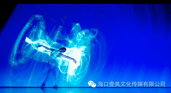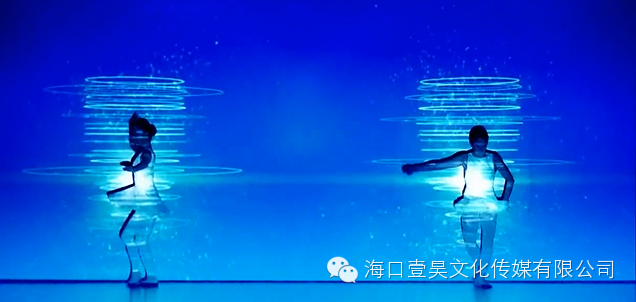 表演者站在荧幕前方做出一系列表演动作,配合背后荧幕上的视频,这是人与视频互动的表演效果,使人产生一种仿佛表演者融入到视频当中的神奇视觉感受,不禁令人啧啧称奇。