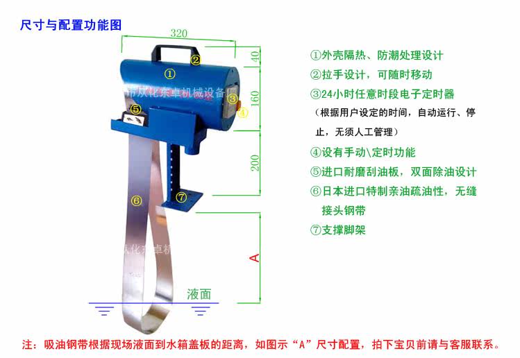 (注:刮油机又称为撇油机、浮油捞除机、油水分离机、除油机)