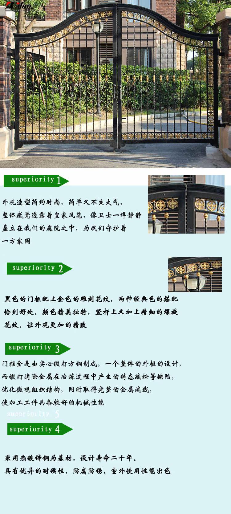 这款全实心锻打方钢大门,突破了传统空心门的设计,比以往空心产品更加牢固,抗撞击力性能强,外观精美,制作工艺精细。为了确保博盾具有与总不同的耐候性,公司技术中心研发了数十道特殊表面处理工序,运用高科技,经过多道特殊图层工序产生永久性表面涂层,使博盾具有优异的防腐性、耐潮耐温、耐候性及长久的表面自洁,15年免维护,使用寿命达20年以上。