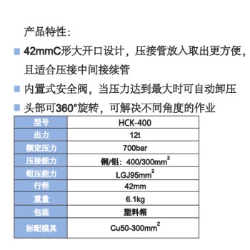 压接能力: 铜/铝400/300mm2,钳压能力95mm2