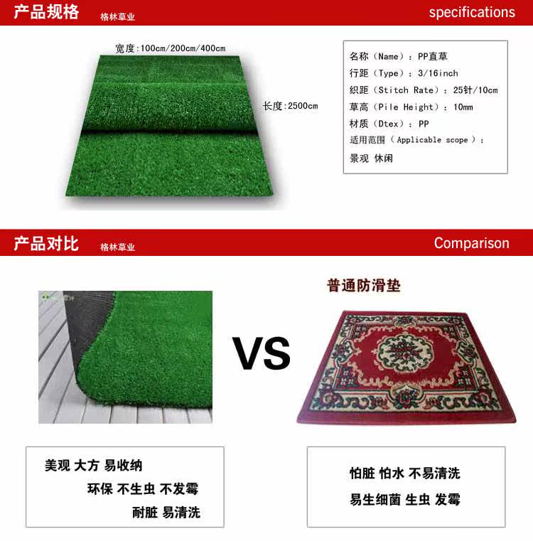 - 绒高:7mm(经过我公司长期研究测试,发现7mm的绝对优势所在:1、耐压,就算是快递物流不文明的发货,也不会造成草丝的压倒;2、每根草丝都是笔直的竖着,这样颜色就会更均匀;3、商业机密,格林家独有,新品,别家还是使用老式的10mm,买家收到货,草丝都压得不成样子哦!)