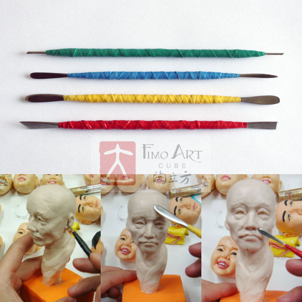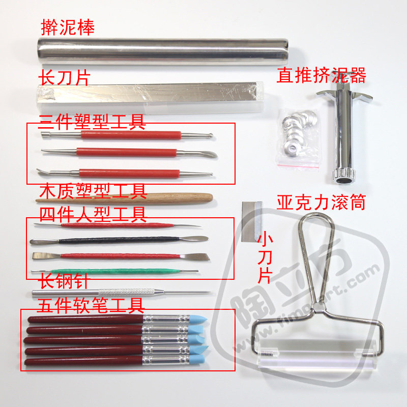 十件工具套装:软陶工具并不好找,以上十件工具均为陶立方艺术在线通过专业实践操作定制出的实用工具,性价比很高。其它普通工具,比如:美工刀、小钳子、直尺、镊子、瓷砖(操作台)、护手霜(防止泥粘手)等等大家自备,本站暂不提供。十件原总价:142.5元。套装价更优惠:135元/套