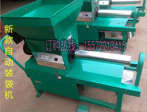 6.套上菌袋(先在料筒上抹些水,以便于套袋),同时往料斗里装菌末,一般次装满为宜。松开脚踏离合,机械开始工作。本机械松紧可自行调节(机器调节松紧位置在机箱里面)。菌袋装满后会停止工作,用脚踏离合使其自动落袋,方便快捷。以此进行工作。