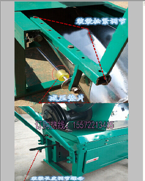 2.电机的装配:电机的主轴应配置直径70的单槽皮带轮,A型,980的皮带。10mmX30mm外螺 、10mm螺母各4个。10mm平垫8个,弹垫4个。并按照安装要求安装电机和皮带,保证其平行度。