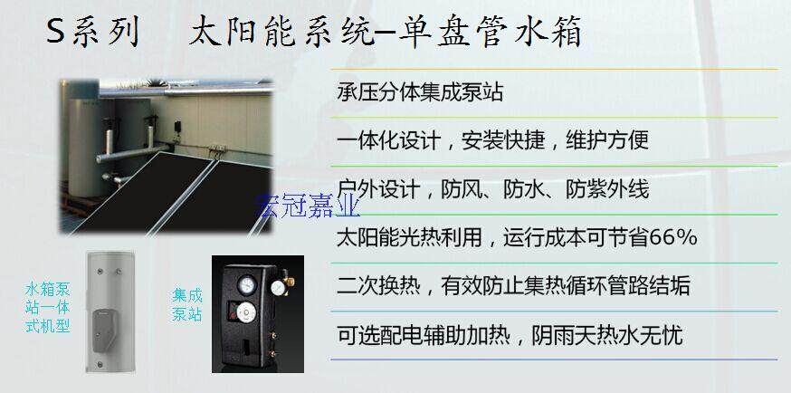 S系列 (平板太阳能配套) | TZY150 | 150 | 60~80℃ | 0.8 | 0.85 | Rp3/4 | 无盘管 | / | G3/4 | Rp3/4 | 470x506x1606 | 44 |