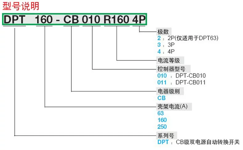 分断能力:6kA(DPT63)、36kA(DPT160)、50kA(DPT250)