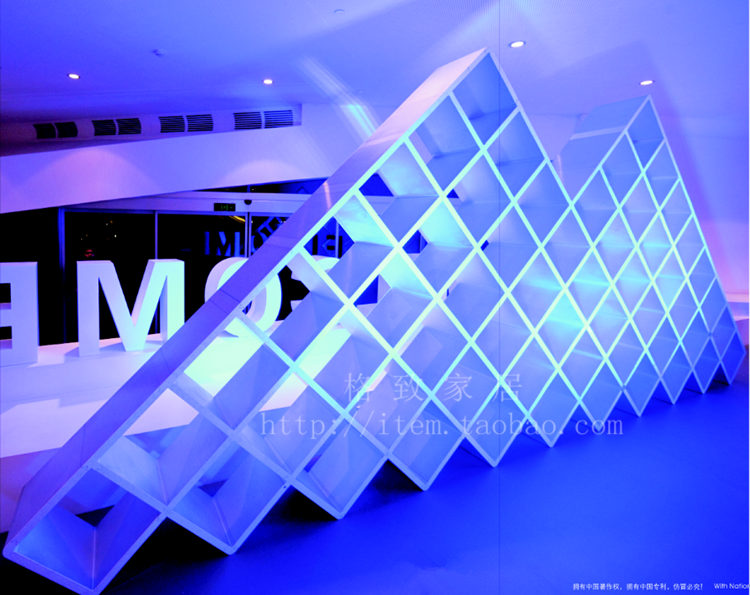墙壁悬挂装饰及建筑外立面装饰,可以安装七彩LED灯(可以做闪烁或不闪烁)。梯形,椭圆,三角,方形,伞形,圆柱等几何形状,可以任意组合,这是一个极具想象力的给合产品,只要你能想到的开明状,就一定能够实现。