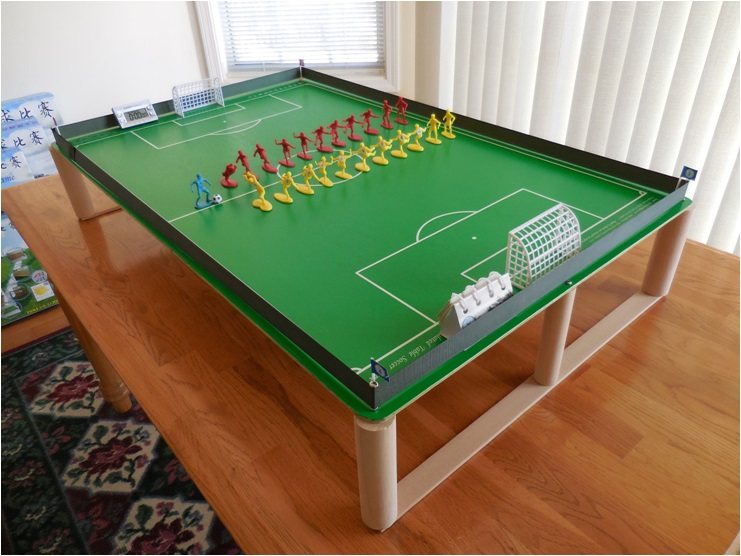 健身,益智,快乐!新一代竞技娱乐专利产品!特大号产品的场板宽而长,适合更多战术选择或2~4人比赛。11名红色和11名黄色球员人偶,带1名蓝色裁判员人偶和红黄牌,带固定梁。特大号包装尺寸重量:1025×660×71 mm,5.43 kg。装配尺寸重量:980×618×228 mm,2.98 kg。