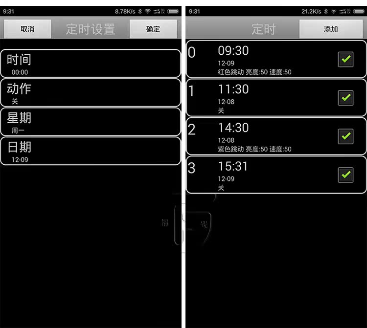 各种颜色选择、更多闪烁变换切换,定时组合任意设置,脱机保存。