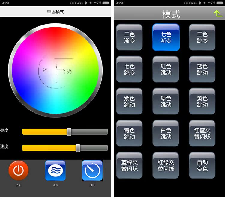 扫描产品上二维码,安装手机APP程序,即可用手机轻松控制。想要什么颜色轻轻一点。