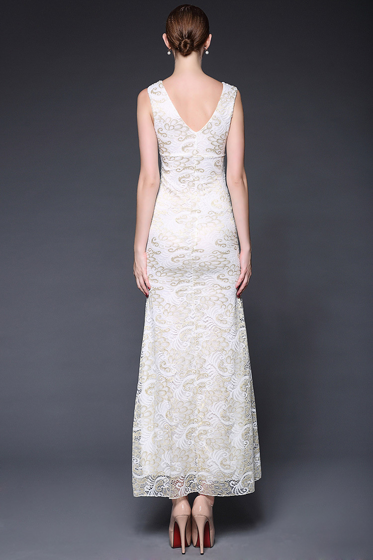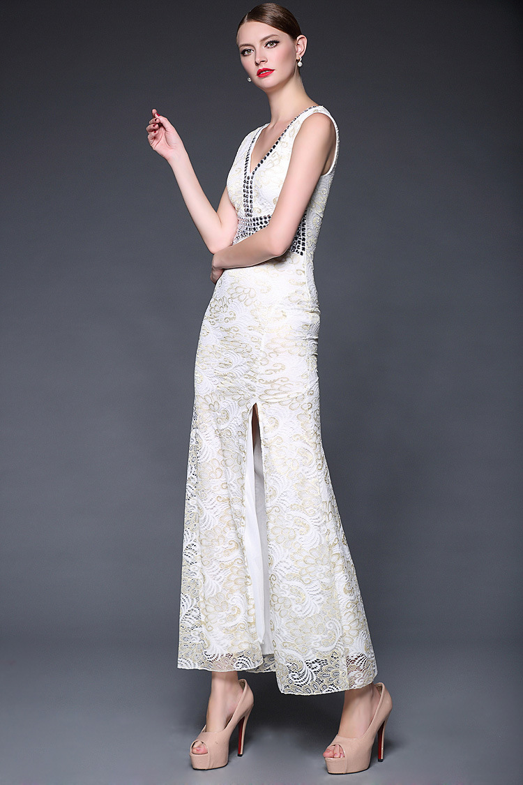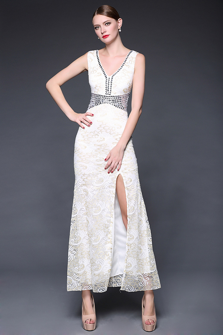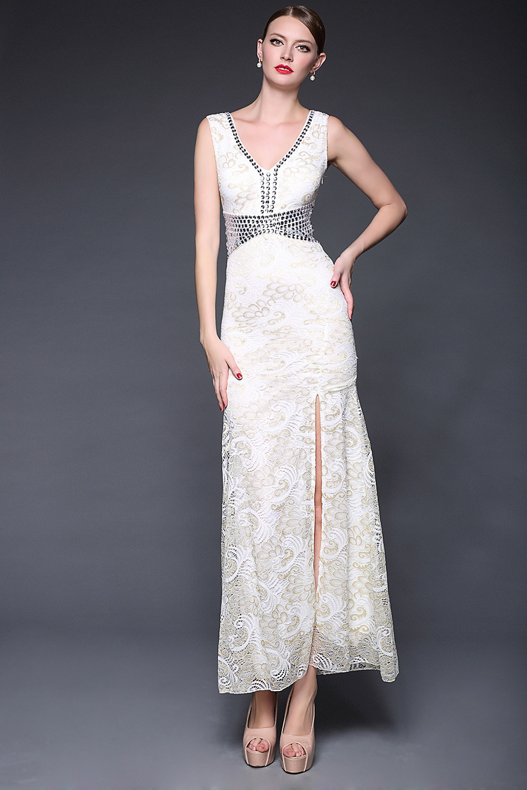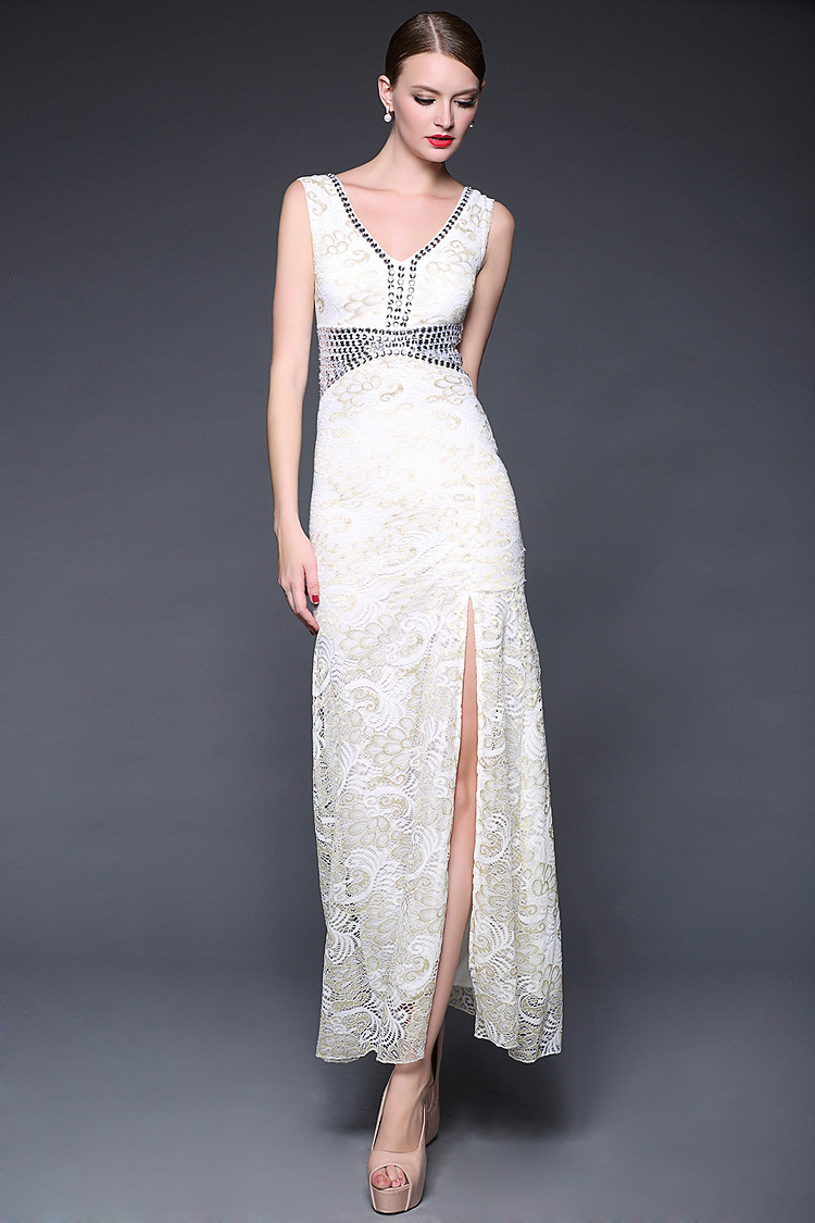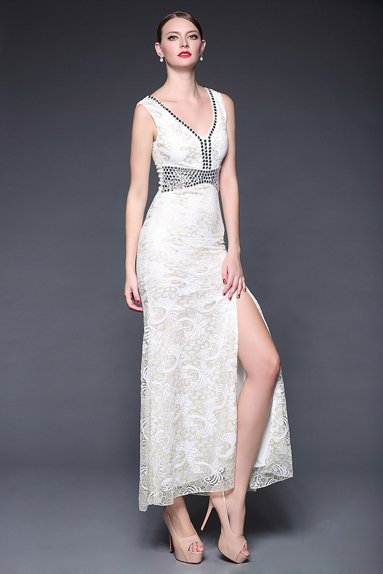 2015夏季 女装新款性感修身蕾丝开叉V领晚礼服 连衣裙W0237