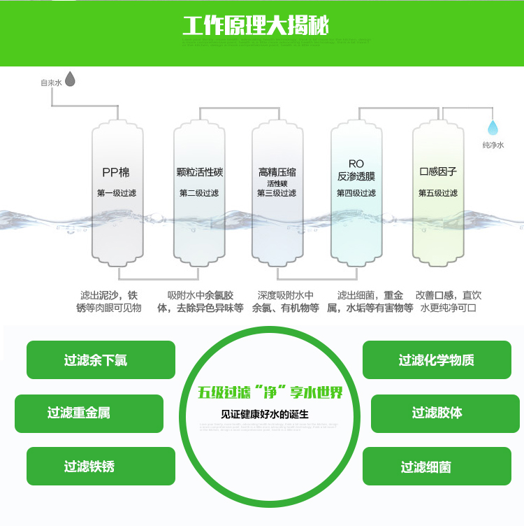 该阶段的主要任务是将自来水进行粗过滤,为进入反渗透膜做准备,保证在进入反渗透膜之前达到一定的水质,以保护反渗透膜的使用效果和使用寿命。该过程为将原水箱的自来水经过细砂,活性碳及精密过滤器的过滤,将水中的杂质,有机物,胶体,悬浮物等去除,防止这些大颗粒杂质进入反渗透膜后堵塞反渗透膜。经过粗过滤,水质有了一定的提高。并允许进入下一个环节。