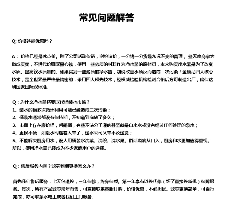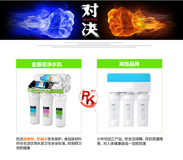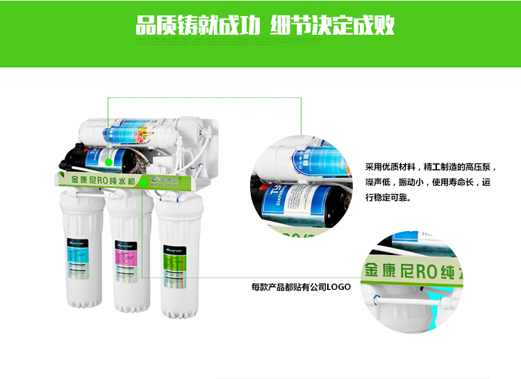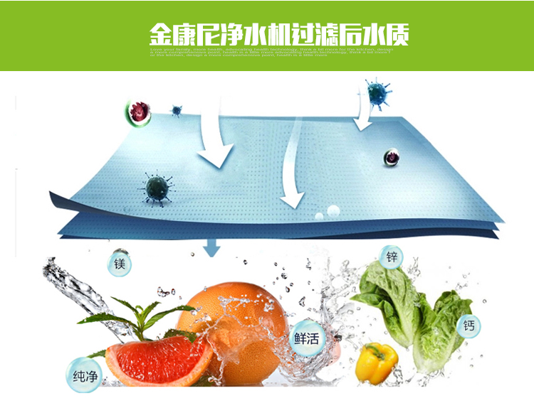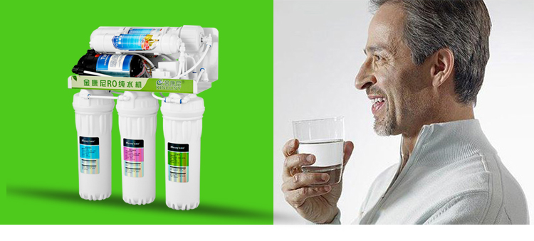 经过粗过滤的水再经过反渗透膜即为一级反渗透,反渗透膜为半透膜,能够阻止Ga2+,Mg2+,Fe-2,SO4-2,Cl-1,Na+等大离子通过,为保证反渗透的效果和保护反渗透膜,必须向反渗透容器中不断加入阻垢剂,同时必须保证水温在25℃以上,(冬季使用蒸汽热交换器)并保证一定的水压,(使用立泵)在一定的压力下,含离子水被挤压通过反渗透膜,从而形成两种水,凡是通过反渗透膜的水即成品水进入下一个环节,而未经过反渗透膜的水被排出,经过一级反渗透处理的水再进入下一个环节———二级反渗透。