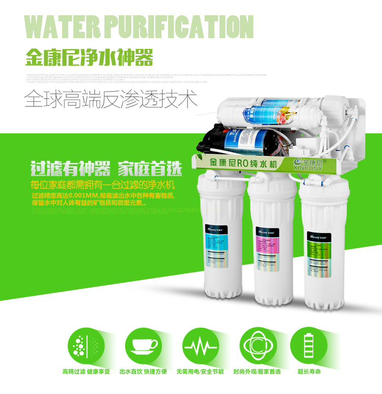 二级反渗透的原理与一级反渗透相同,其作用是进一步去除水中的盐分,(Ga2+,Mg2+,Fe-2,SO4-2,Cl-1,Na+等离子)使得水质进一步提高,经过二级反渗透后,水质电导率可以接近1MΩ.CM。经过一、二级反渗透预处理后,最后保留下来的水成为EDI的给水,而未经过反渗透膜的水(浓水)被及时排出,其比例一般为1:3,即每生产一吨的合格水,就要排掉大约3吨的浓水(中水)。