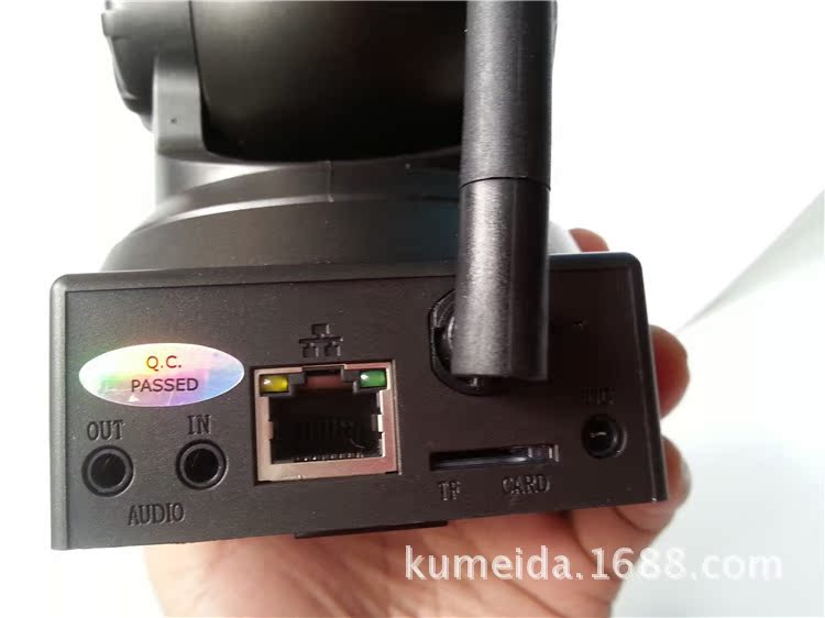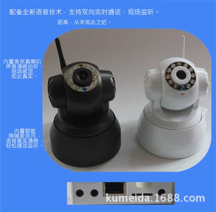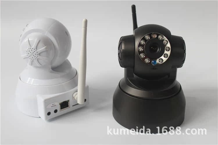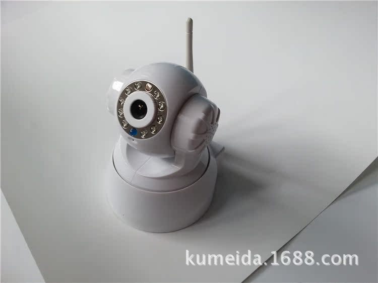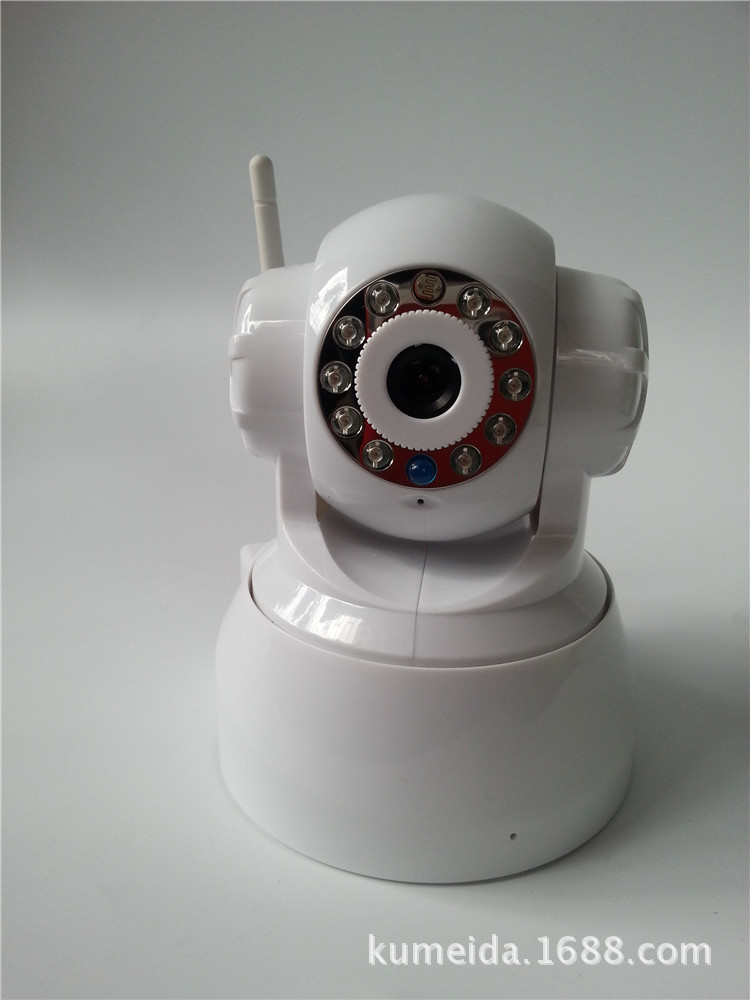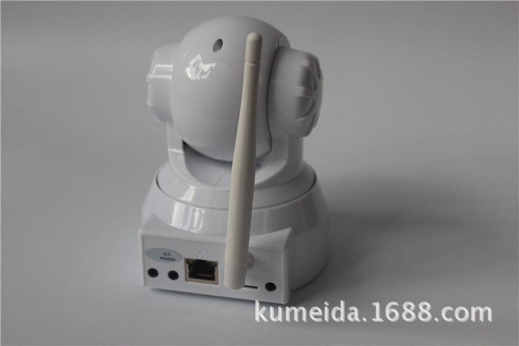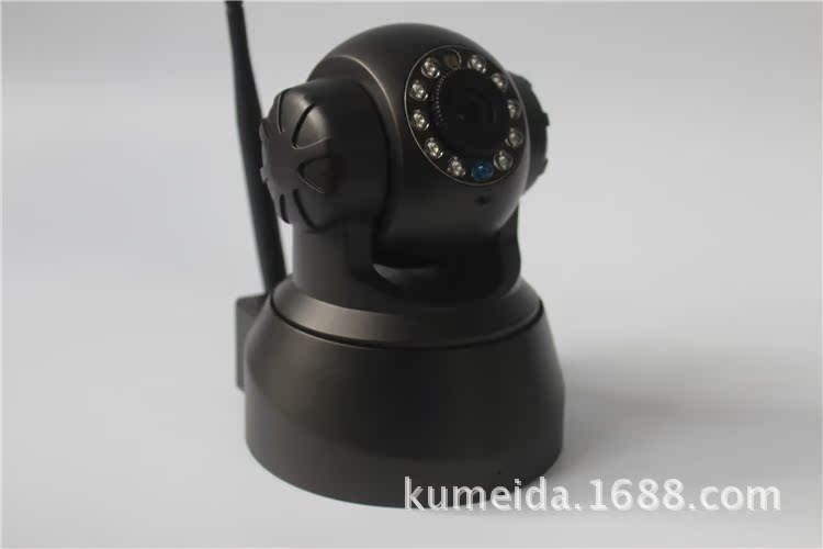 无线室内云台网络摄像机,M-JPEG CMOS 30万像素, 双向语音,支持TF卡及IRCUT功能。P2P技术,即插即用。水平转动355°,垂直120°,3.6mm镜头,红外10米,DC5V 2A。