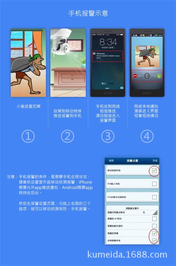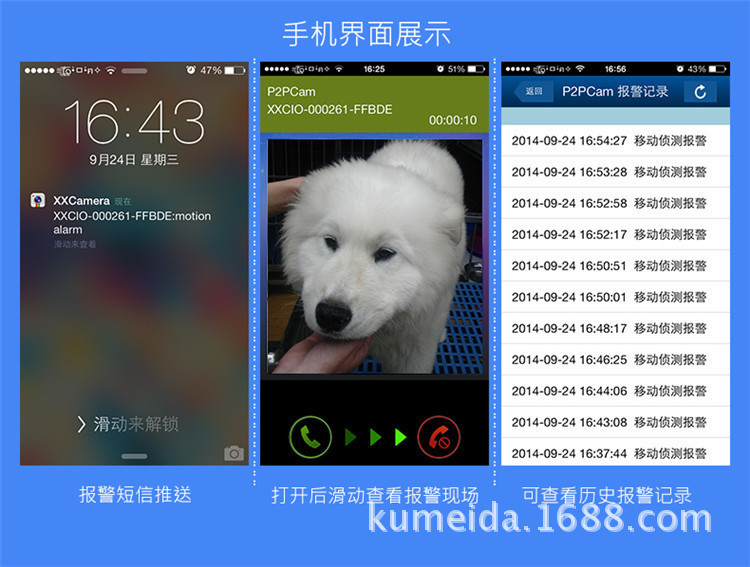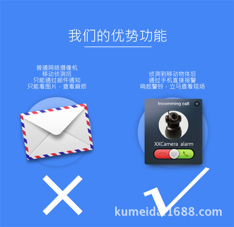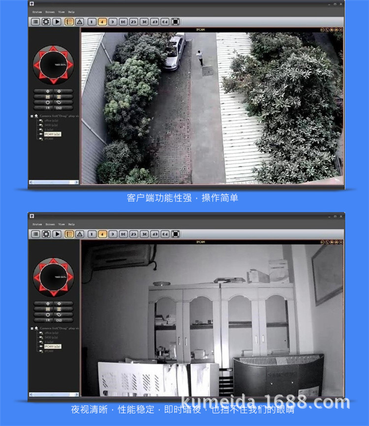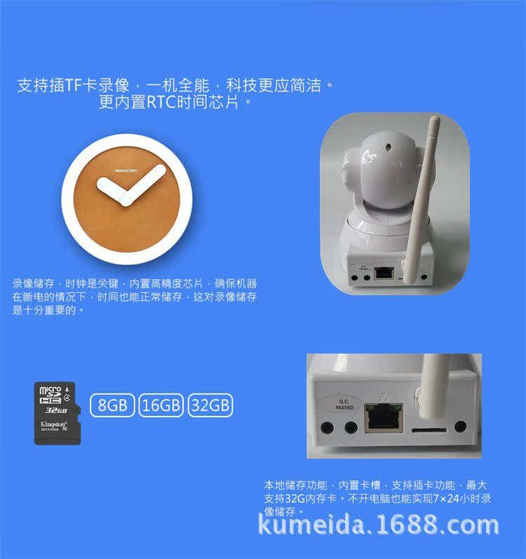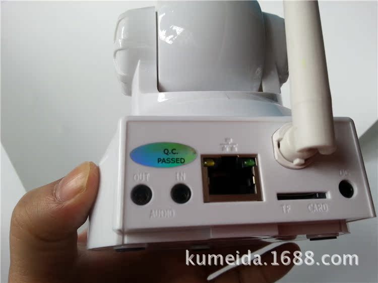 无线室内云台网络摄像机,M-JPEG CMOS 30万像素, 双向语音,支持TF卡及IRCUT功能。P2P技术,即插即用。水平转动355°,垂直120°,3.6mm镜头,红外10米,DC5V 2A。