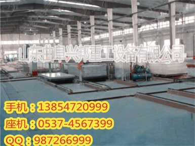 5、自动装架:自动装架就是把托板拍子组合在一起,使其达到长期保持相当的精度,使板材初凝时就在平面误差不超过2的环境中定型,从而在生产厚板的过程中使其板面保持平整。另外由于是自动装架子,不用人抬,机器手搬运。从而大大减少了人为对板材造成的损坏。也一改过去手动设备只能生产12毫米以内及长度不超过2440mm的板材的历史。现在我公司的设备,亦可以生产10m长,50mm厚的板材。