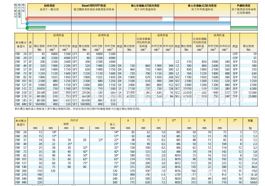 整体单向离合器型号FBF72,离心非接触式Z系列,内孔为38毫米