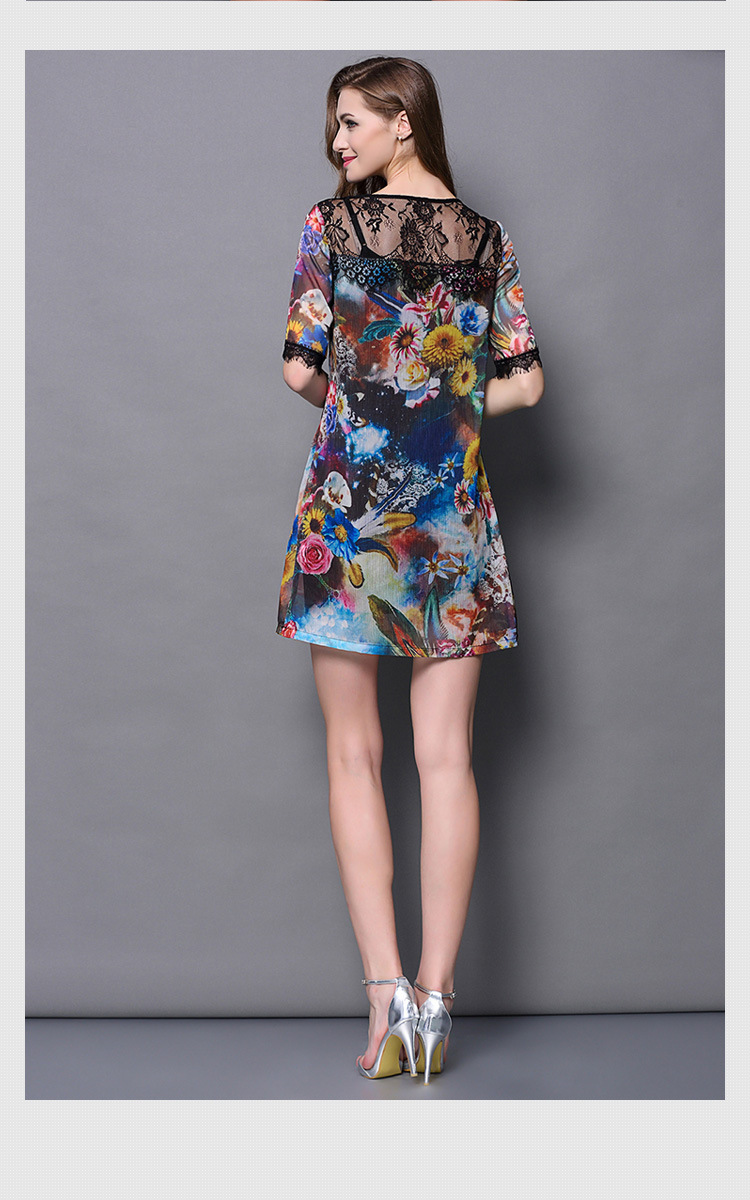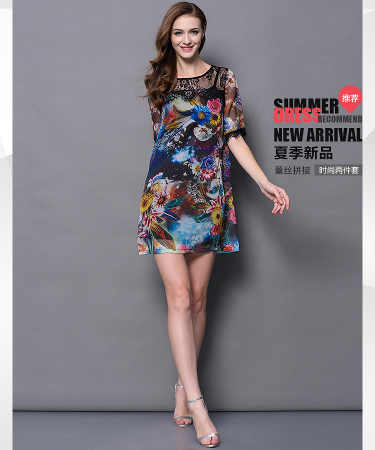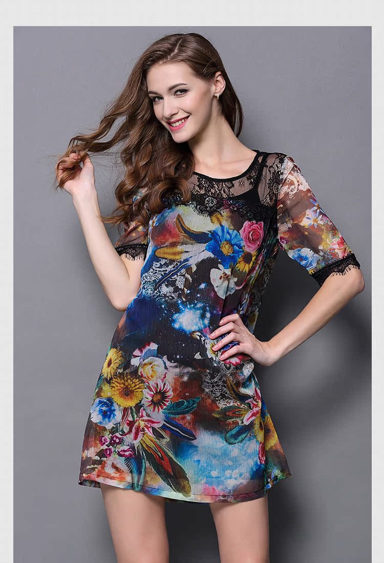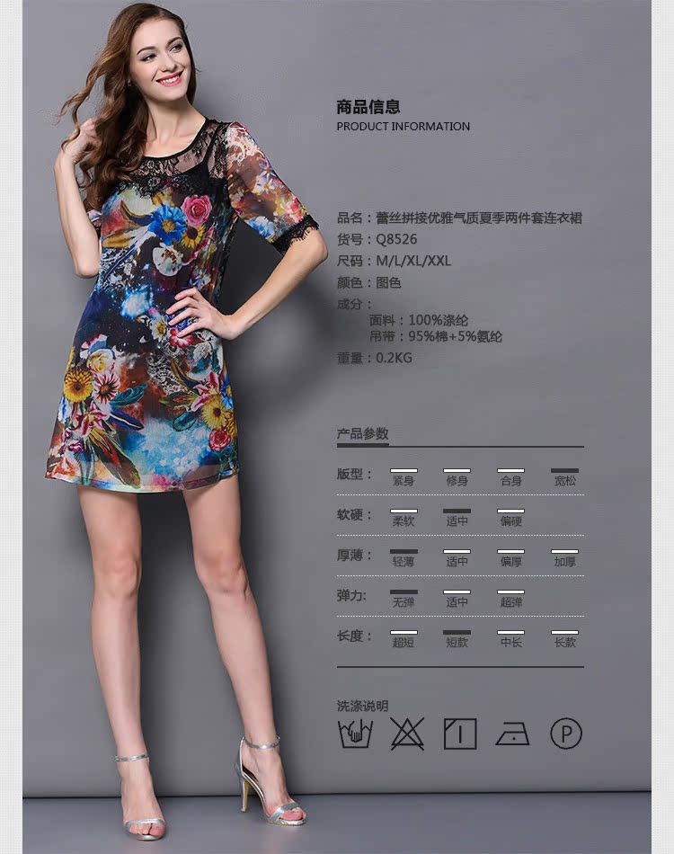2015欧美蕾丝拼接优雅气质夏季两件套连衣裙 代理批发Q8526