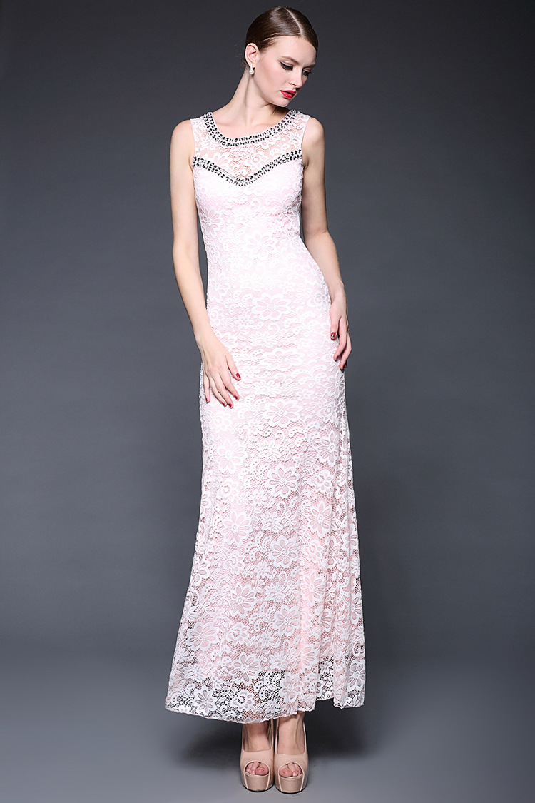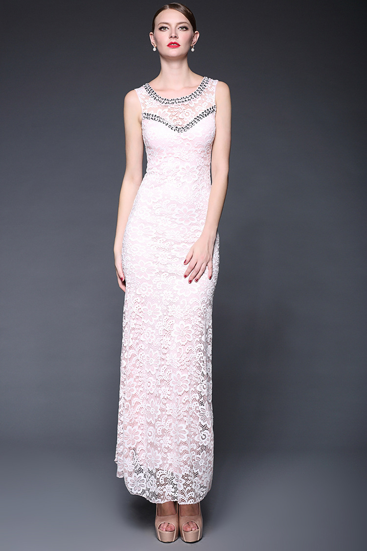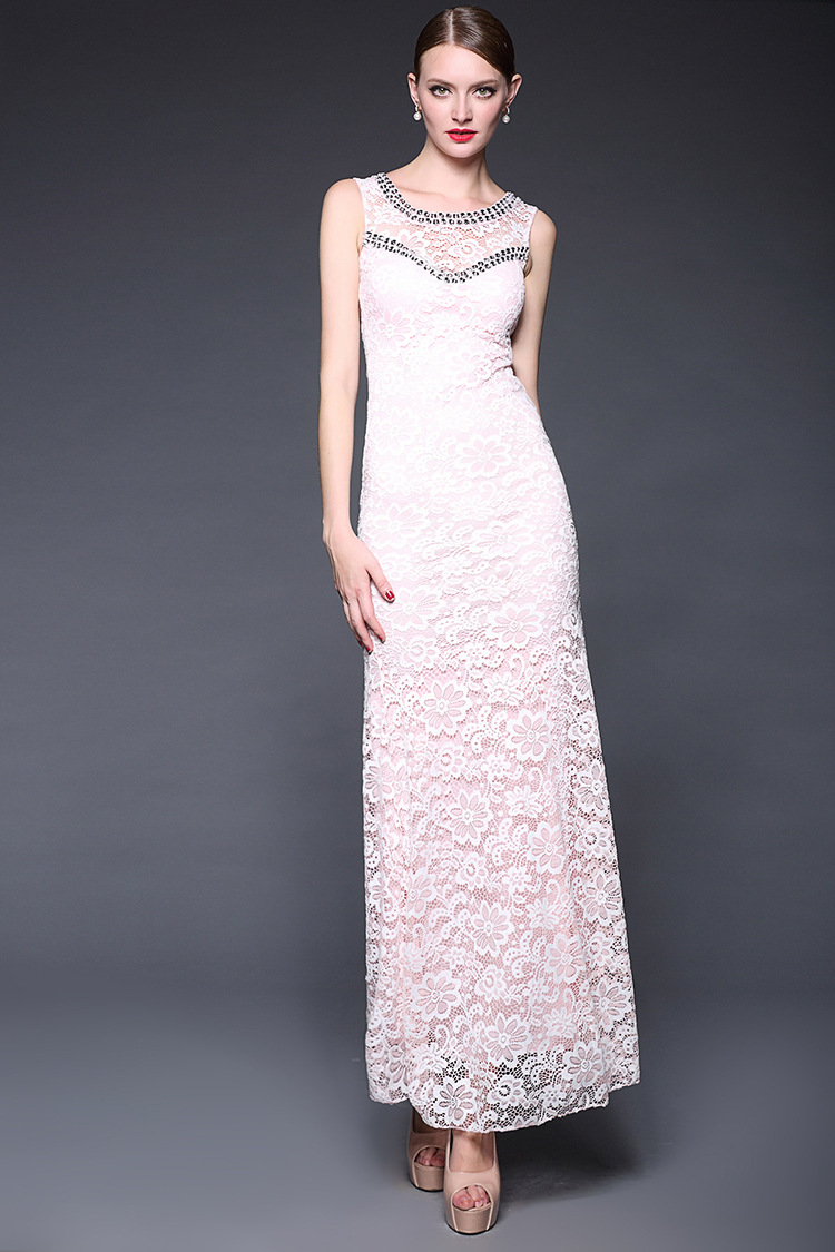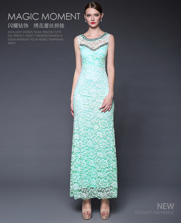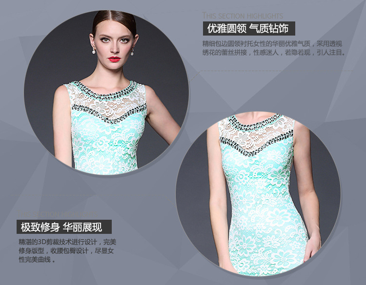 夏季女装 2015欧美新款手工钉珠气质名媛修身晚礼服 连衣裙W0159