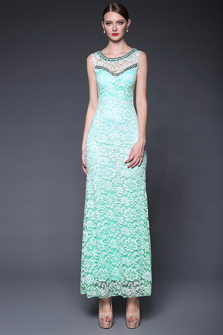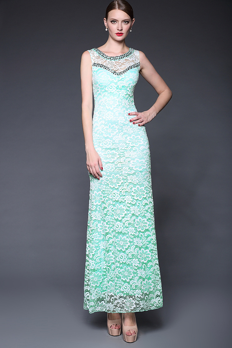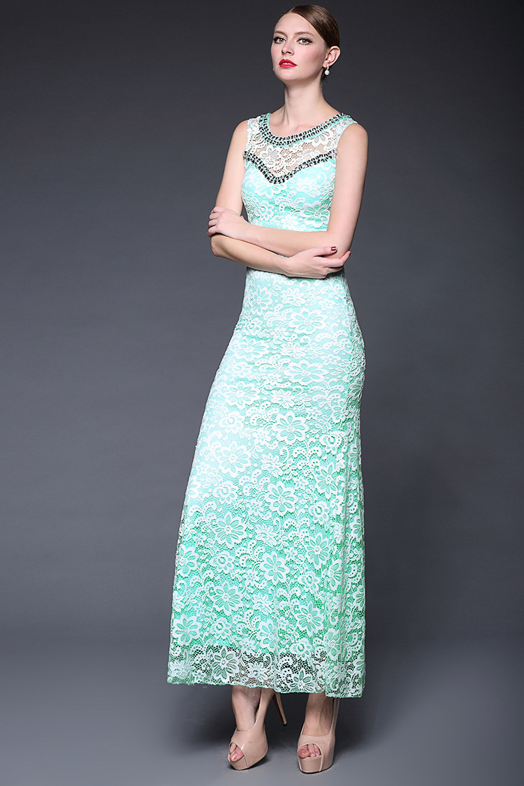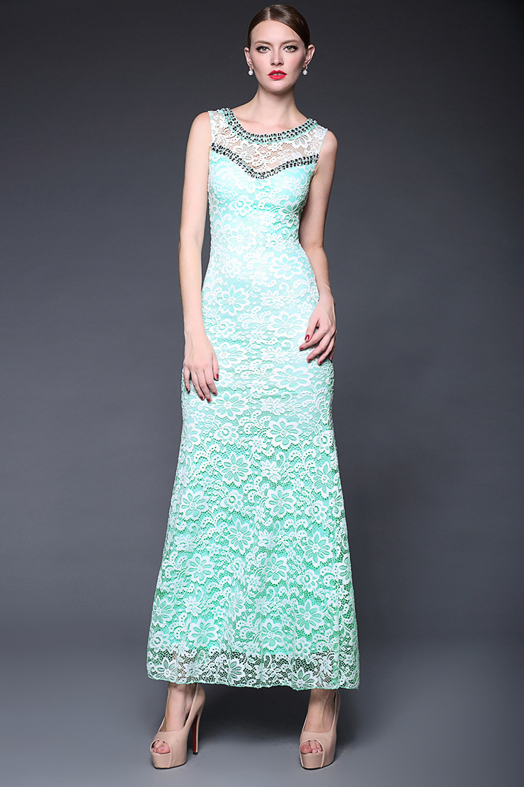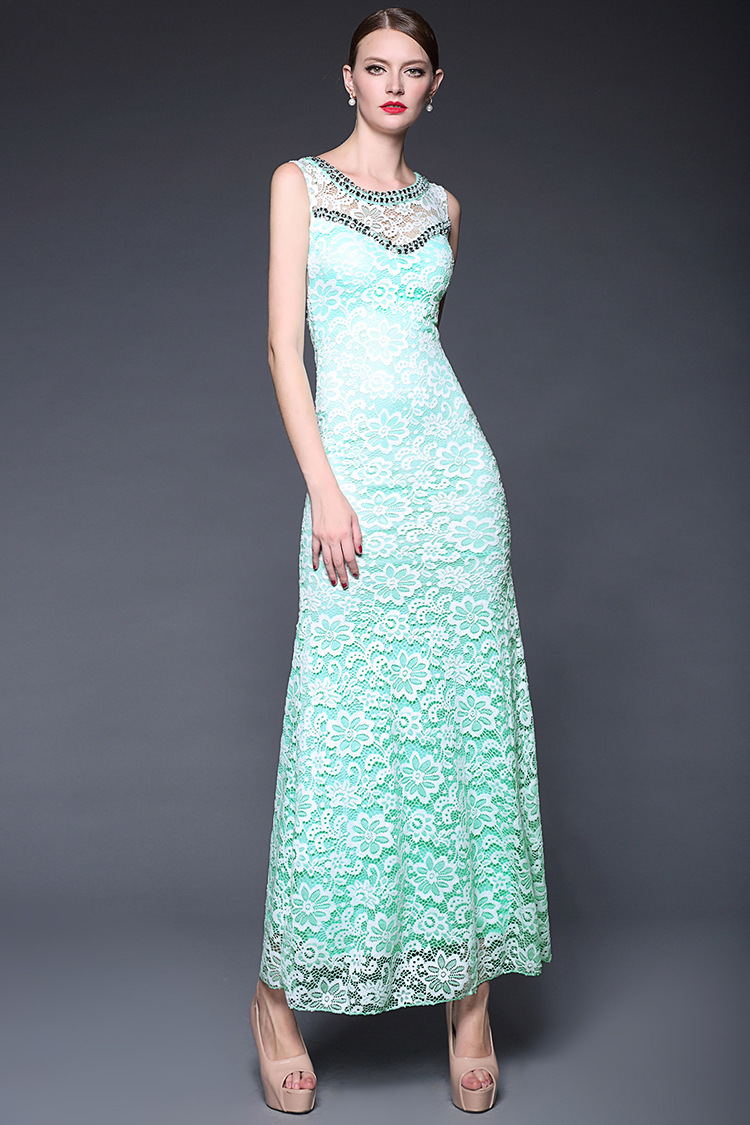 夏季女装 2015欧美新款手工钉珠气质名媛修身晚礼服 连衣裙W0159