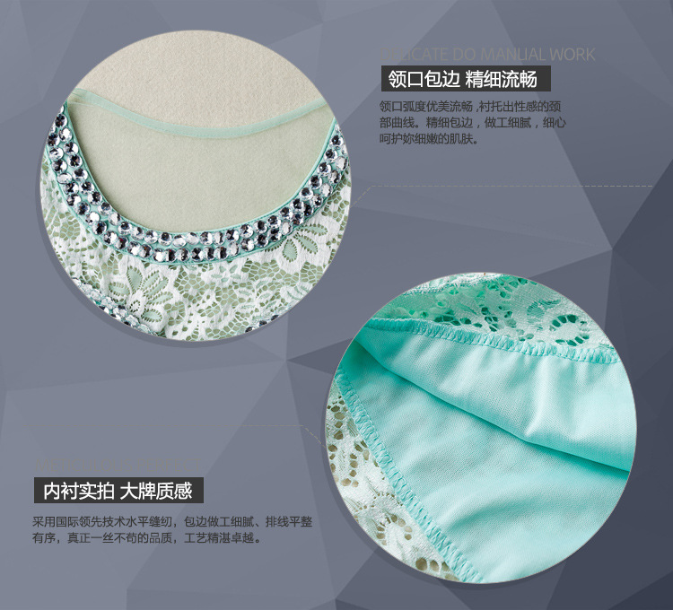 | ■ 品牌名称: | YBKCP 优百客诚品 | ■ 商品款号: | W0159 | | ■ 商品名称: | 手工钉珠气质名媛修身晚礼服 | ■ 商品重量: | 0.42kg | | ■ 可选颜色: | 粉色、绿色 | ■ 商品附件: | 正品吊牌、品牌外包装、密封塑料袋、品牌环保袋 | | ■ 面料成份: | 蕾丝 100%聚酯纤维 里料:100%涤纶 | | ■ 商品概况: | | | | | | | ■ 洗涤建议: | 1.用淡盐水浸泡,可使颜色更牢固,水温不要超过30℃,浸泡不超5分钟。 2.不可机洗及漂白,中温熨烫。建议不要用洗衣粉,用洗衣液清洗。 3.应将深浅色产品分开洗涤,避免互相染色,置于室外通风处悬挂晾干。 4.避免暴晒,暴晒会破坏纤维结构,缩短使用寿命。 | | ■ 色差指引: | 因拍摄角度、光线及显示设备不同等因素影响,在您显示设备看到的商品图片与实物间可能会有微弱的色差, 实际颜色以您收到的实物颜色为准。假如您对商品颜色要求较为严格的话,请您谨慎购买。 |