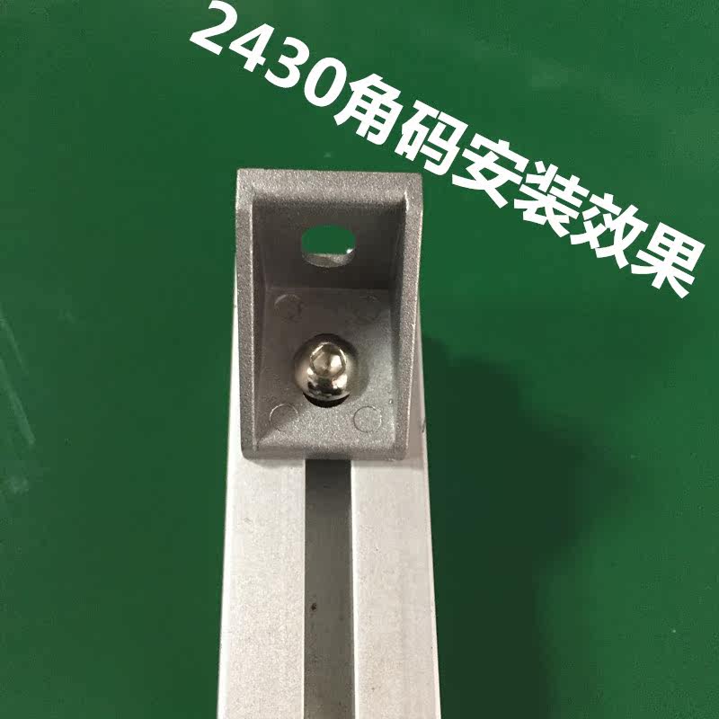 订货号:EF-2430角件,材料:压铸铝。应用说明:适用型材2525、3030国标、欧标型材。用于两型材直角连接,可以用做需移动位置的型材连接,简单方便,连接时用的螺栓和螺母需另配。型材通常用对应系列的T型螺母配内六角螺栓或T型螺栓配法兰螺母使用,欧标型材也可用内六角螺栓配滑块螺母、弹性螺母使用。国标型材还可用方型螺母与内六角螺栓配合使用。