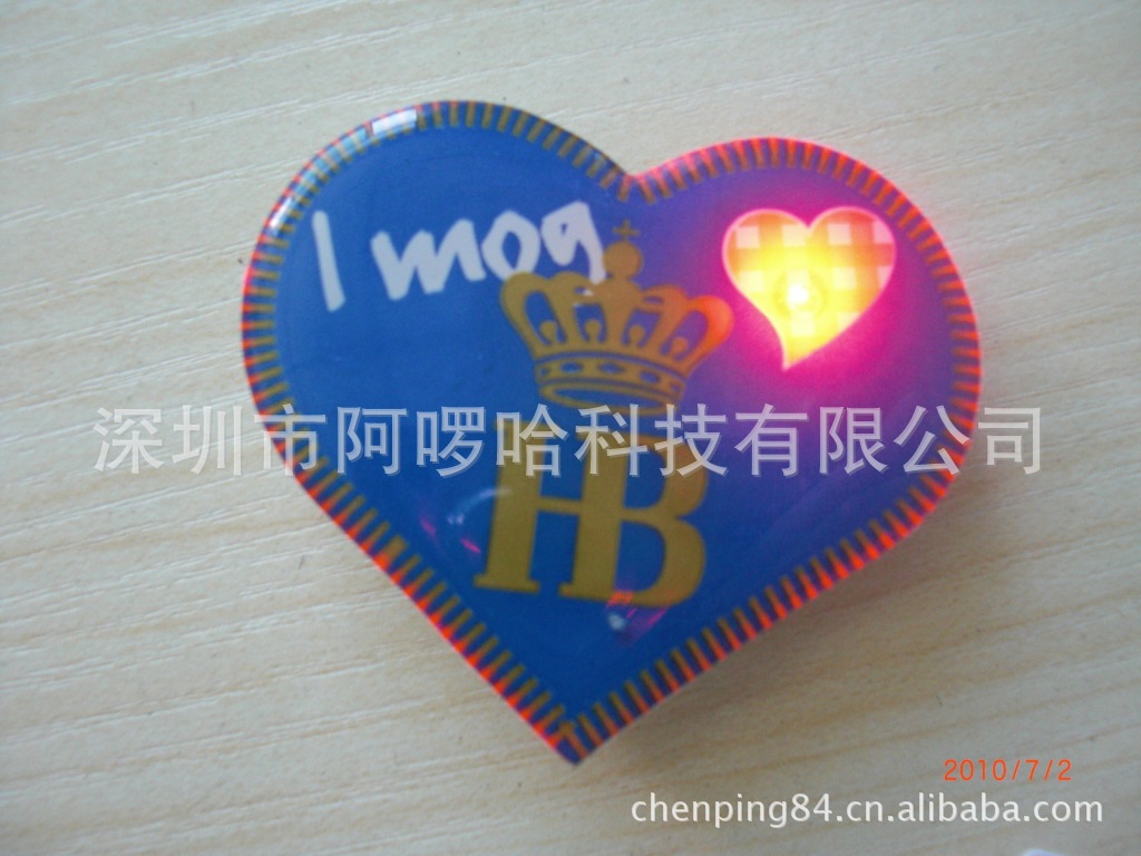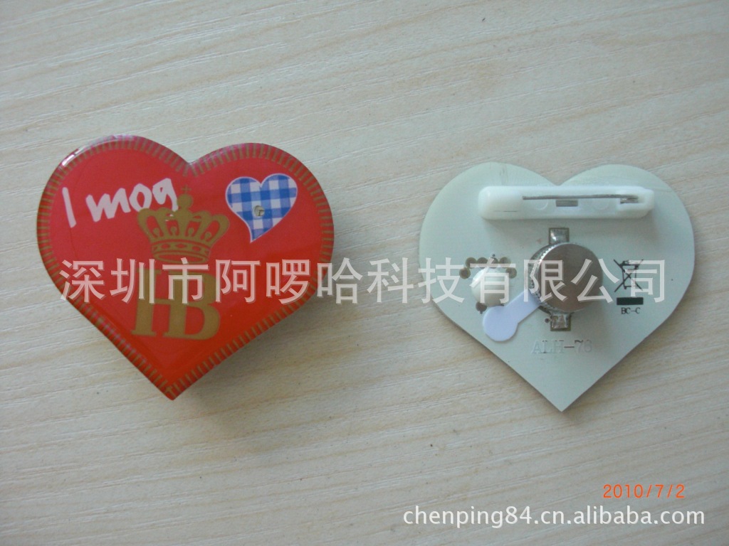 注:我司生产发光胸章多年,有丰富的胸章模板库存,可快速为你提供大货产品,且不用开模,可为您省下模具费。