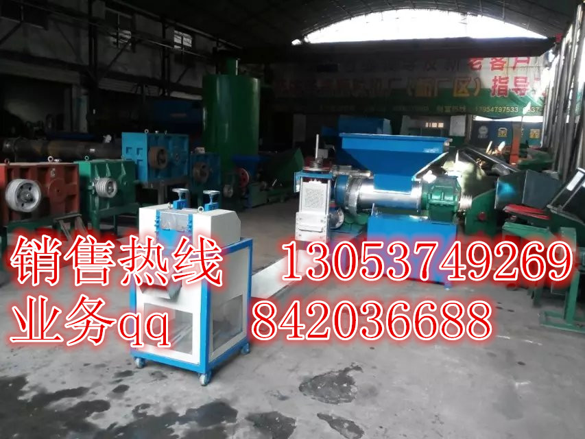 该机由粉碎机、自动上料机、主机、副机、切粒机组成一套,先将原料进行色度分类,以免影响质量,降低利润。