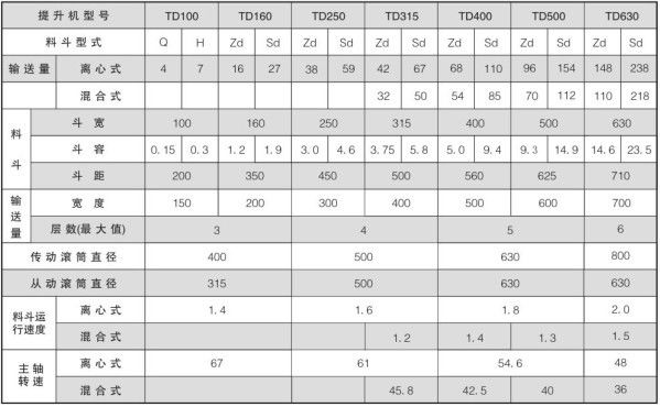TD型斗式提升机型号表