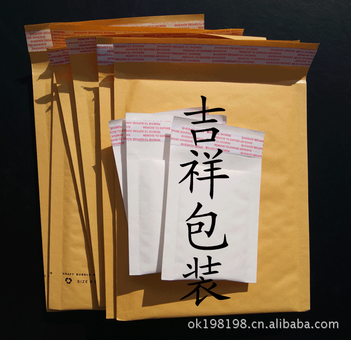 牛皮纸汽泡信封袋内含气珠衬垫提供有效,全方面的保护。具有防潮,防震功能。外观:白色外壳,美观,坚韧。 便利性:光滑的气垫保护内层利于物品的放入。 人性化:自封贴口设计安全,可靠。经特殊处理可在封面直接书写。 环保:可回收再利用。建议用途: 商品目录、药物、CD光碟、DVD光碟、珠宝、表、医疗器械、摄影器材、样品、录像带、配件、电脑主板、小件物品、宣传资料、光驱等。