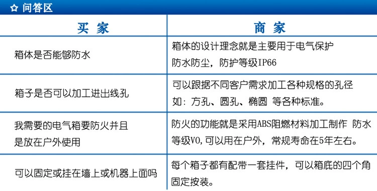 2.材质:选用台湾进口的新料,优质的热塑性塑料ABS或(PC)聚碳酸酯,或者可以按客户的要求来先择材料,可订做阻燃料,防紫外线材料,上盖有透明与不透明两种形式(材料无腐蚀性,防静电,绝缘性佳)