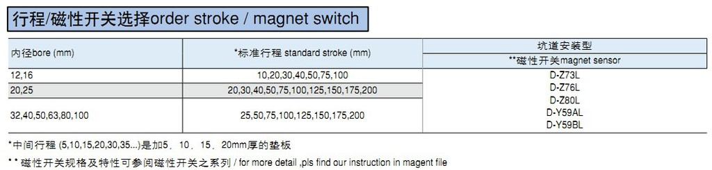 内径 / bore (mm) 20 25 32 40 50 63 80 100