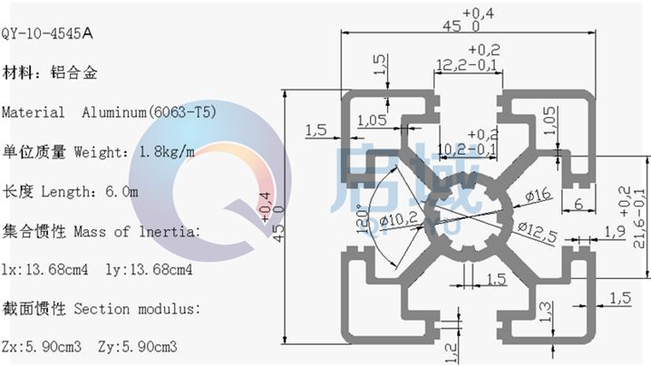 型材货号:QY-10-4545A(45*45欧标轻型,槽10系列)应用说明: