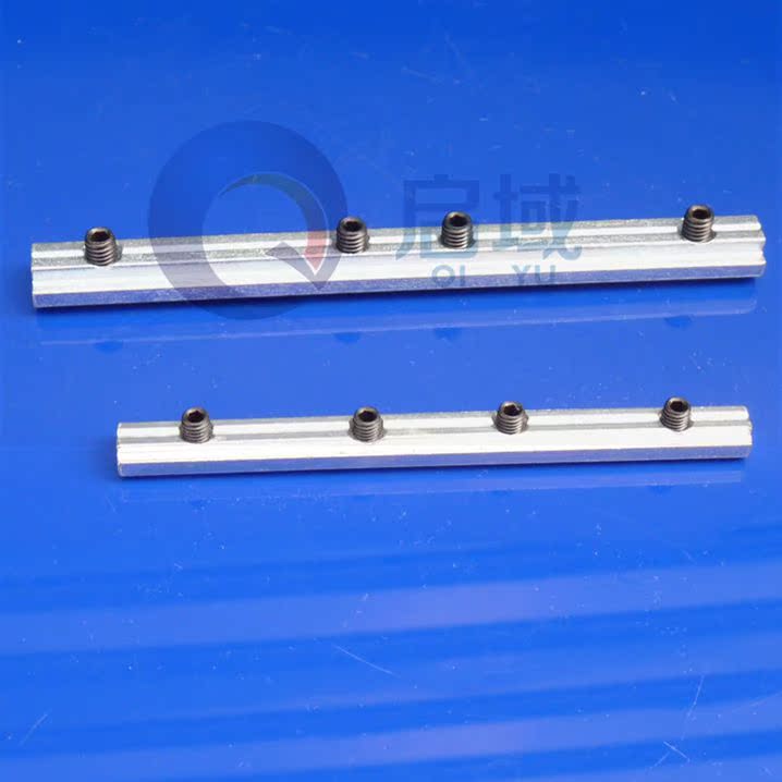 用途:用于两根型材之间直线加长连接,安装时将其插入两根型材对接处的槽坑内,然后用紧定螺钉锁紧。