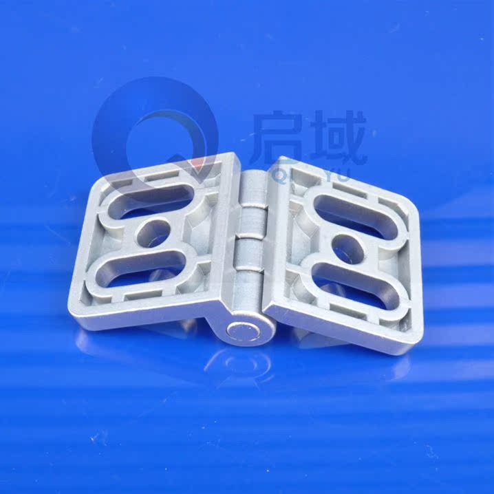 货号:QY-4545万能金属合页,材料:锌合金。应用说明:用途:适合于4545、5050、6060型材与型材或板之间的活动连接,连接方式:一般用M8滑块螺母与内六角螺栓连接。