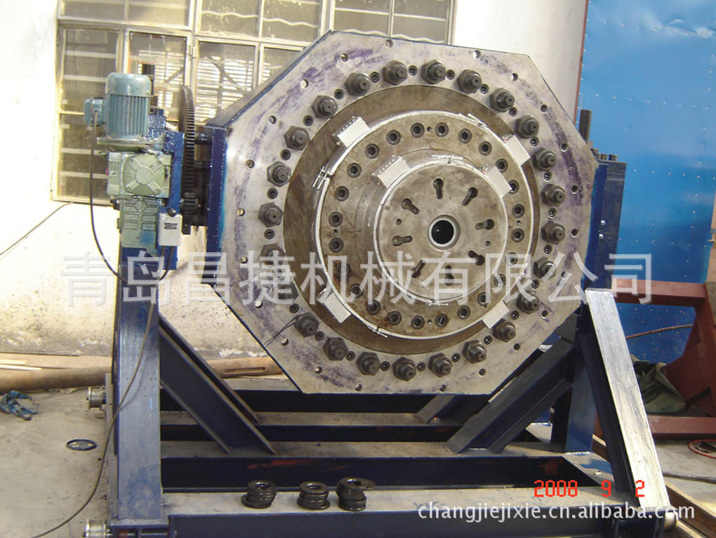 该生产线主要生产大口径MDPE/HDPE管材。此种管材具有耐热、耐老化、机械强度高、耐环境应力开裂性、抗蠕变性能好等优点,是城际间输送燃气和城市供水管道首选产品。生产线特点:高效挤出机:配以昌捷公司为PE管材设计的不等距波状螺杆,强制冷却逆向螺旋槽加料段,配以高速低噪音硬齿面减速箱,产量高,物料熔温低,节能效果好。螺旋分流式复合机头:保证融体压力,流量均匀无波动,制品密实,表面光滑,无流痕。真空定径与冷却系统:采用板式定径套,水槽采用不锈钢。切割:可以切割大口径厚壁管材。