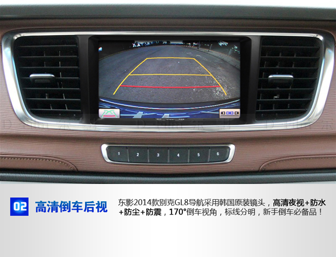 当爱车挂入倒档后,该系统会自动接通位于车尾的高清广角倒车摄像头,将车后状况清晰的显示于车载导航系统的液晶屏上,让您准确把握后方路况,倒车亦如前进般自信、自如。