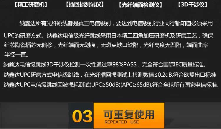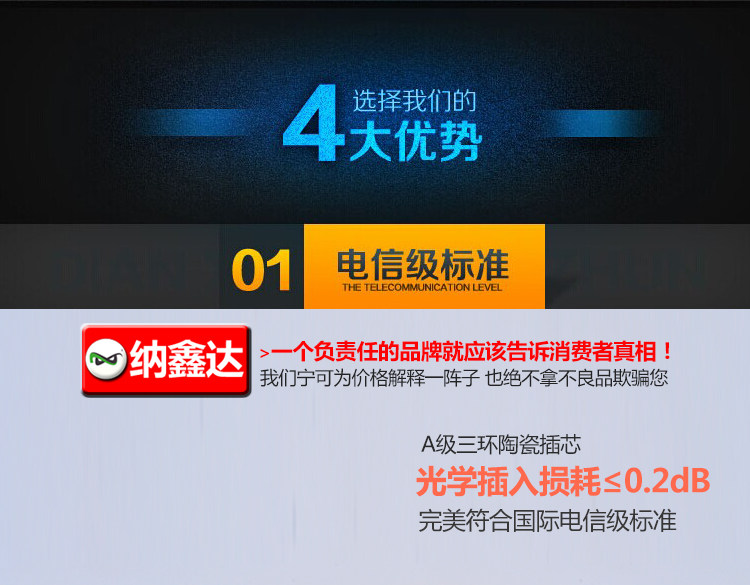 【我们的跳线不是网络级和o.5dB的不合电信标准质量的产品】,价格在电信级里面已经是冰点价格,【因此不接受议价,都是一口价】,亲们可以根据自己的使用要求,使用环境和施工标准,来做出选择,我们绝不强买强卖,只做合理经营!