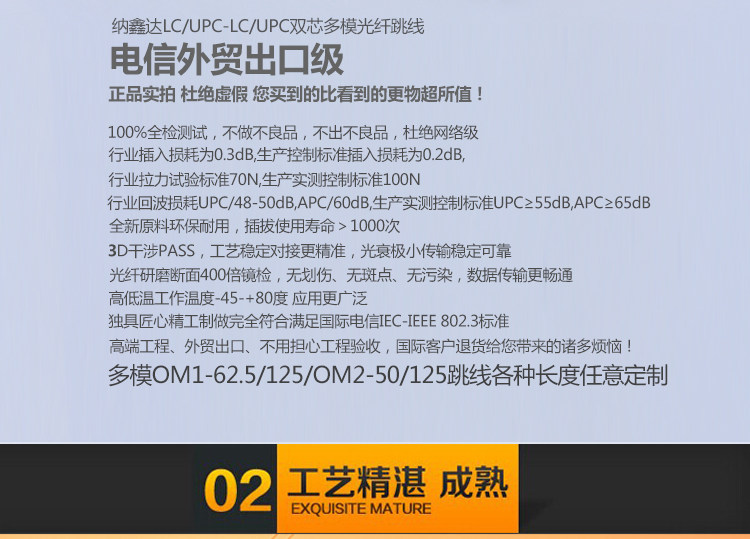 【本产品为正品电信级,插入损耗≤0.2dB,千兆传输带宽 符合国际电信标准】。亲们可以在百度查询来核实这一标准!