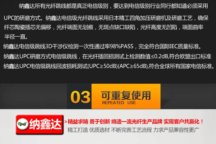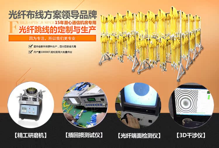 铠装跳线与传统光纤跳线的最大区别在于它针对光纤易折断、易被损坏的缺点,特别设计生产一种细小的可挠性不锈钢套管来保护光纤,再在套管外加上阻燃PVC被覆,以达到放潮防火等功能。同时,我们开发出了特别的制造工艺和独特的结构来保证套管与接头牢固连接。这样独特的设计,使铠装光纤跳接线的施工布线变得简洁方便,降低施工过程中的损耗,并可提高光纤跳接线的使用寿命,提高整个系统的安全和稳定性。