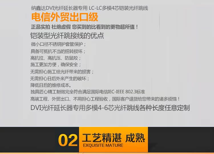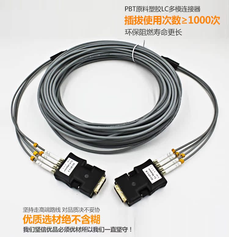 温馨提示:LC-LC多模4芯铠装光纤跳线,加工8个LC头和2个分支器收费100元,每加1米多模4芯光纤加5元,运费另协议。