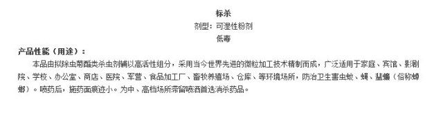 适用对象:蚊蝇、飞虫、飞蛾、蟑螂、蚂蚁、跳蚤、臭虫等卫生害虫