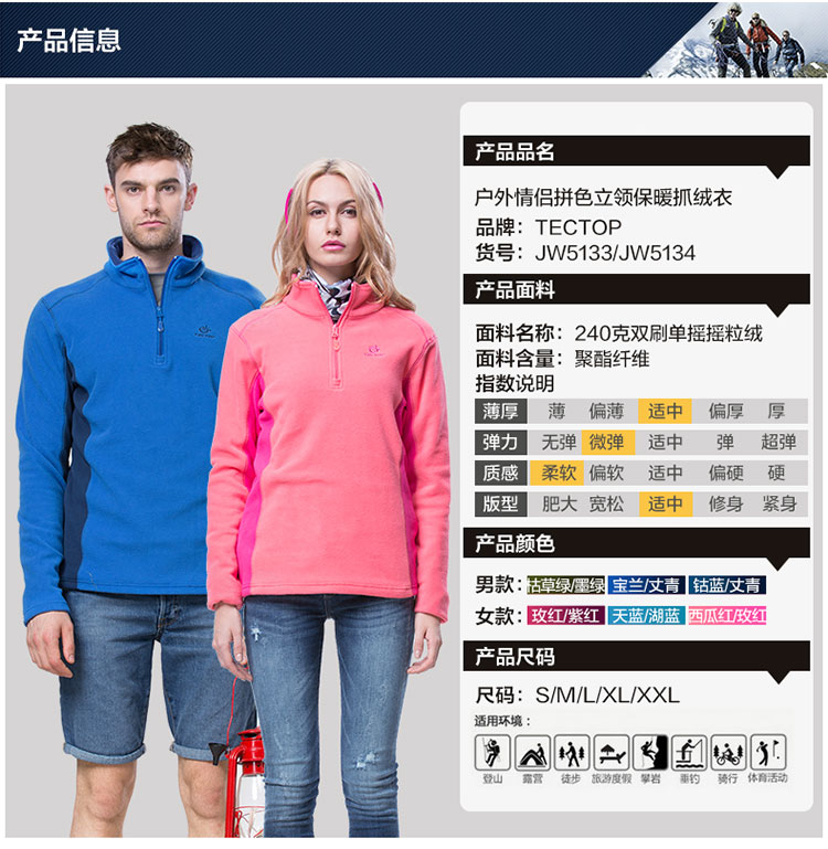 新款立领加厚双刷双摇抓绒外套 库伯户外抓绒衣 999AB情侣款