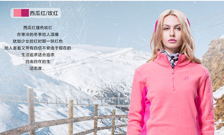 女款户外内衣 挡风保暖 抗静电不褪色WZRY034 立领摇粒绒抓衣