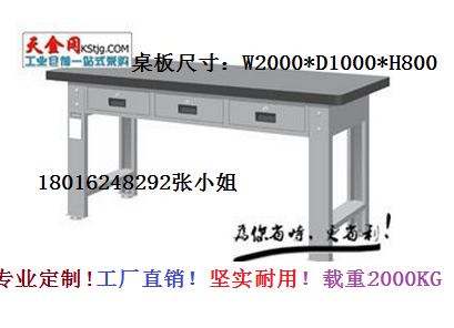桌板:桌板采用40mm的高压复合板(密度板)+10mm的钢板,可使工作桌台面均匀承重达到2000kg;