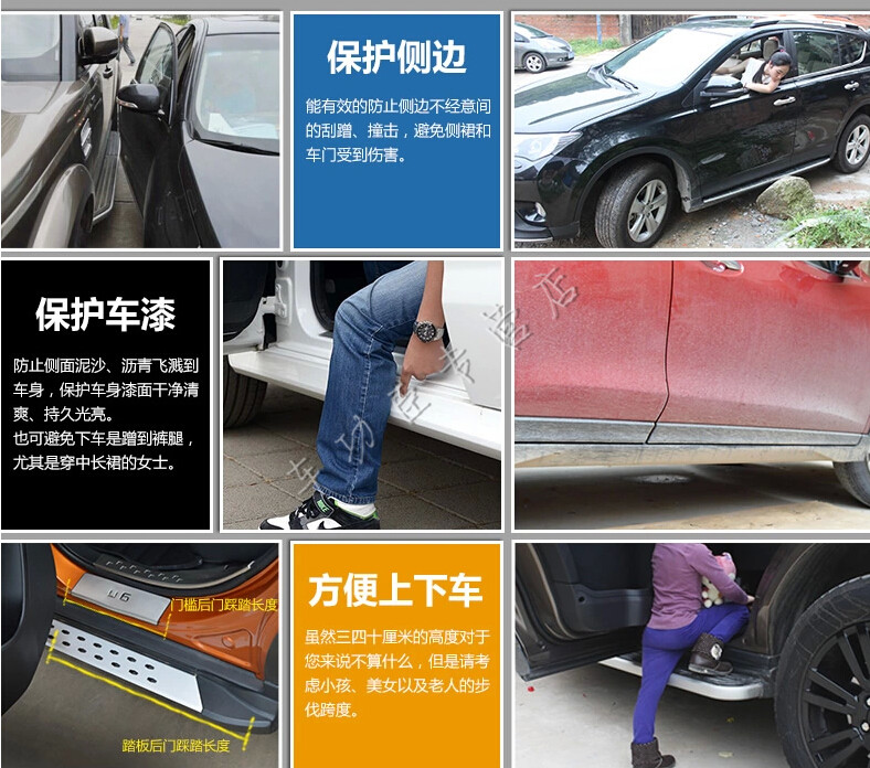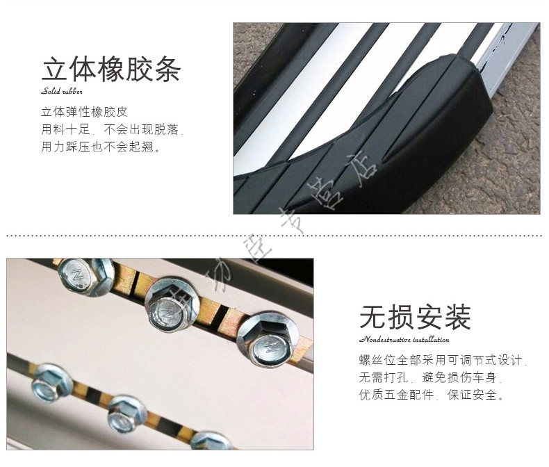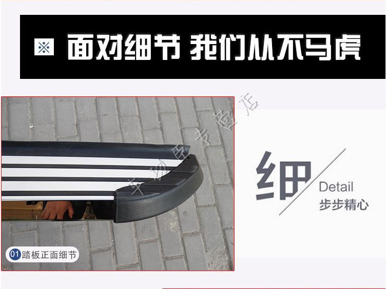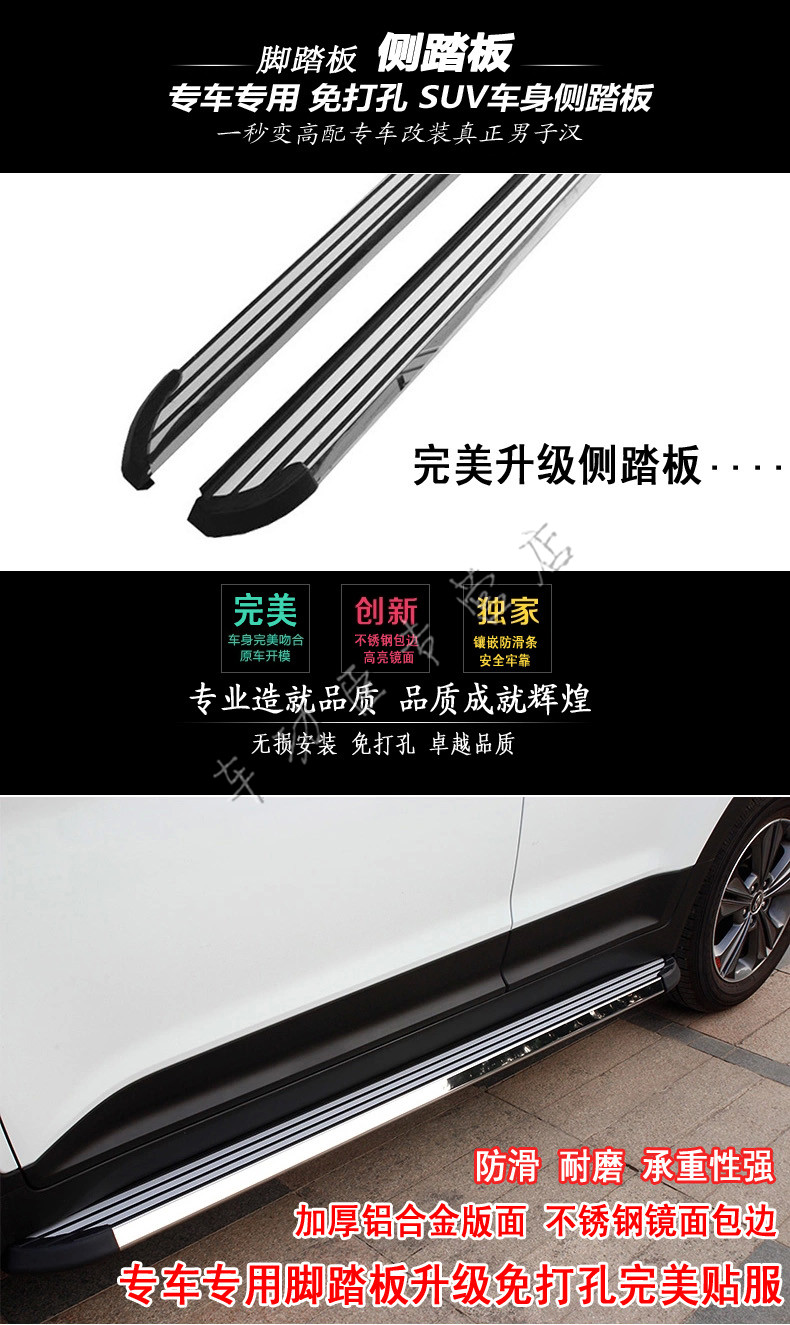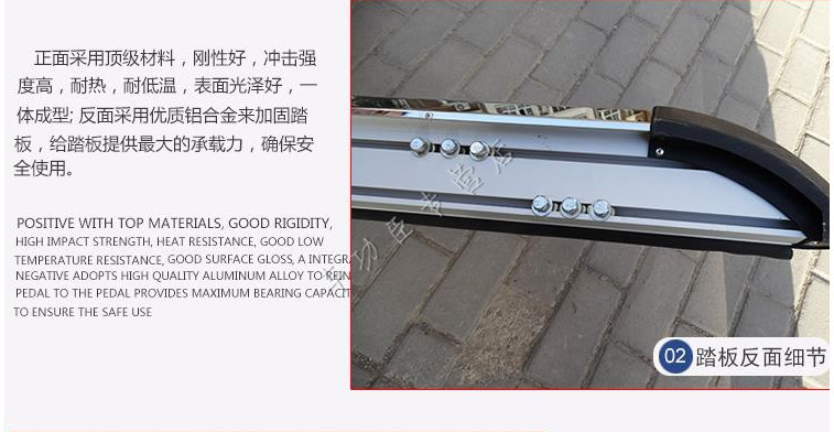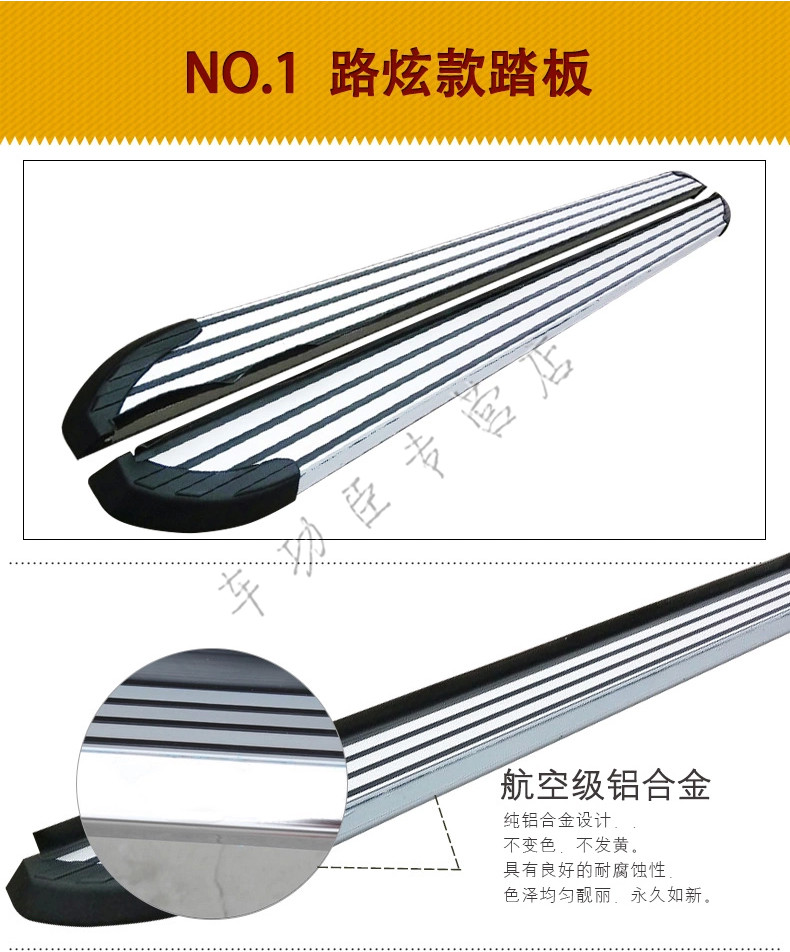 1、踏板采用ABS材料吹塑成型,表面烤漆处理,让车神显得神采奕奕的装饰作用;