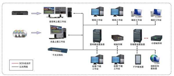 | ◆基于成熟的以太网架构,可在原有网络的基础上快速搭建 ◆灵活的工作流程设计和模块组成,保证了小型制作机构和栏目组低成本媒资系统的成熟应用 ◆采用高性能的存储服务器作为媒资系统的存储和服务核心,大大降低了设备投入成本 ◆数据库服务器、转码服务器、流媒体服务器、文件服务器高度集成,充分满足小型媒资系统的需求 ◆可用已有的非编系统作为上/下载工作站,使原有的设备投入得以充分利用 |